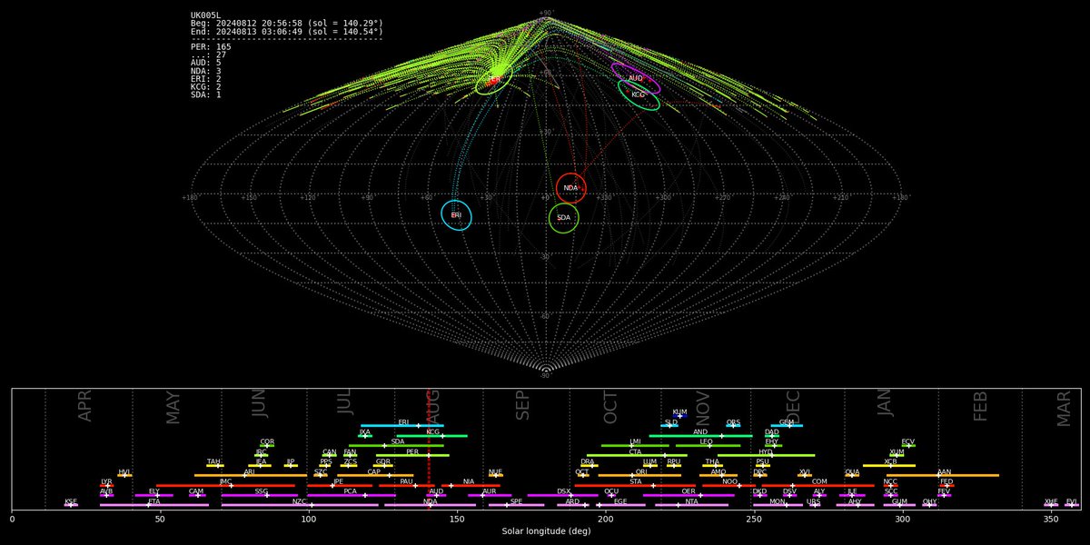 Two representations of the peak of the #perseidmeteorshower from data recorded on @CardiffAS camera UK008V @BannauB overnight 12th/13th August 2024. t.co/9YDyTeROXH